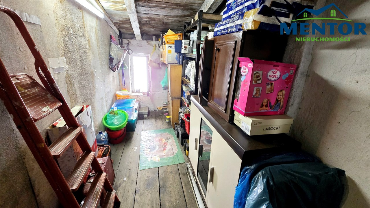 Komórka na strychu graniczy z mieszkaniem, istnieje możliwość wydzielenia dodatkowego pokoju.